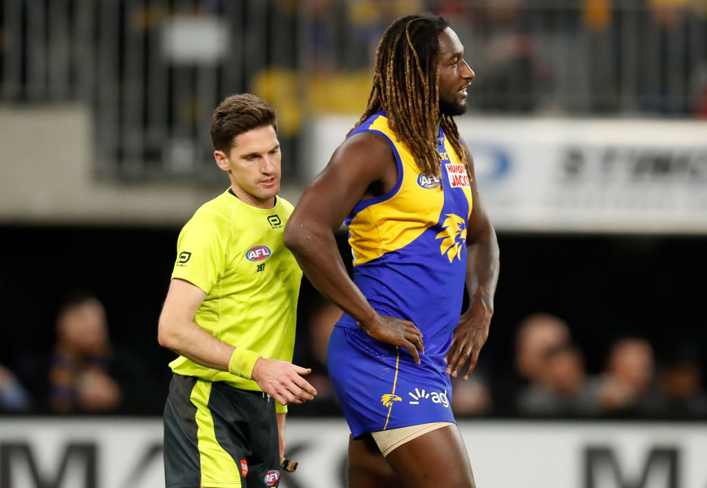 West Coast Eagles ruckman Nic Naitanui has been slapped with a $1000 fine for his hit on Zach Merrett during Thursday night’s elimination final.