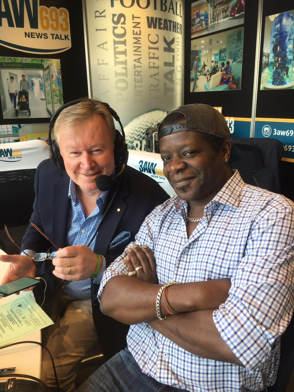 This little cutie, Arielle, upstaged Neil Mitchell on his show. Watch the video on Neil’s facebook page. Opposition Leader Matthew Guy and his sons with Neil Mitchell This little cutie, Arielle, upstaged Neil Mitchell on his show. Watch the video on Neil’s facebook page. Heather’s one of the heroes. She’s a head nurse on the newborn intensive care unit — “I come to work with great pride every day.” Proud parents show off their miracle with Neil Mitchell. Victorian Health Minister Jill Hennessy with Neil Mitchell. Lorinska, from reality TV show ‘Yummy Mummy’, with Denis Walter. Denis Walter with comedian Stephen K. Amos/ Nawwww… Want to distract Neil Mitchell? Put a dog in front of him. Denis Walter with Fairy Bethany