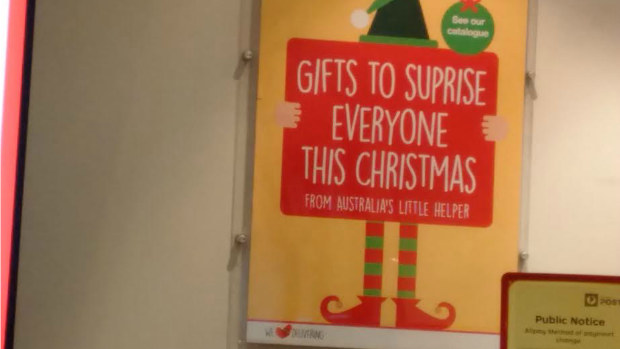 A keen-eyed listener to Neil Mitchell’s program spotted this glaring mistake on a poster at a post office.
