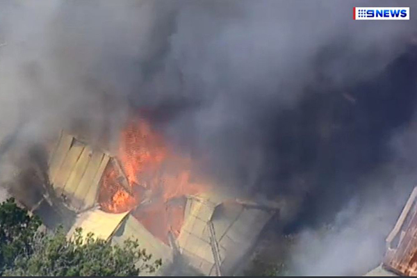 The fire began in nearby grass land and quickly spread to nearby buildings off Cordite Road.