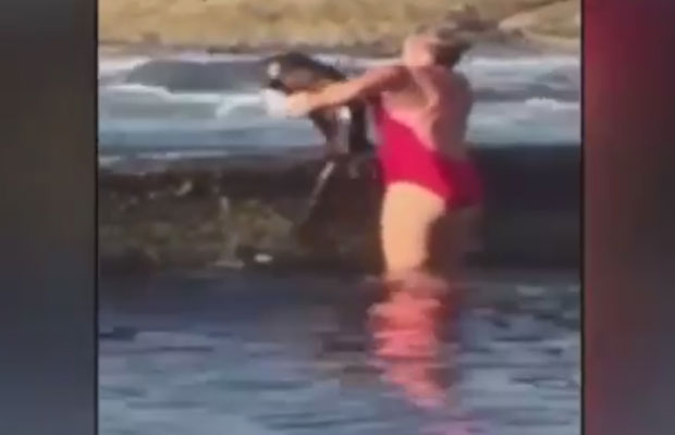 Amazing video emerges of woman picking up a shark and throwing it back into the ocean!