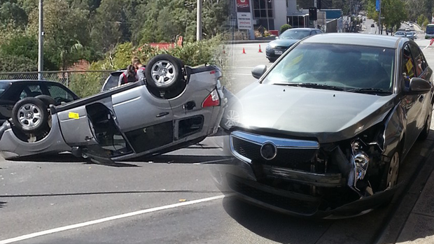 A car flipped in a two-car smash at Greensborough in a separate incident moments later.