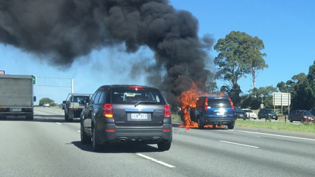 There have been dramatic scenes on the Monash Freeway, with a car bursting into flames.
