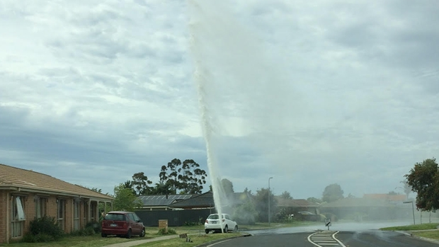 Car hits fire hydrant sending water into the sky at Hoppers Crossing