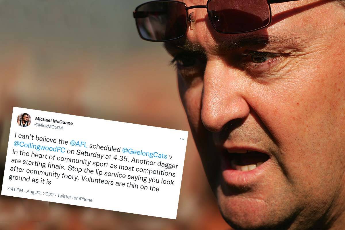 A Collingwood great turned suburban league coach says the AFL’s decision to hold the Geelong v Collingwood blockbuster at 4.35pm on a Saturday is a “dagger in the heart of community sport”.