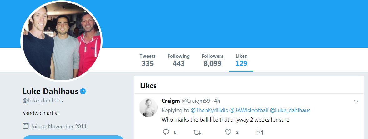 Twitter user Craigm59 said Greene deserves a two-week suspension, which Dahlhaus has since ‘unliked’.