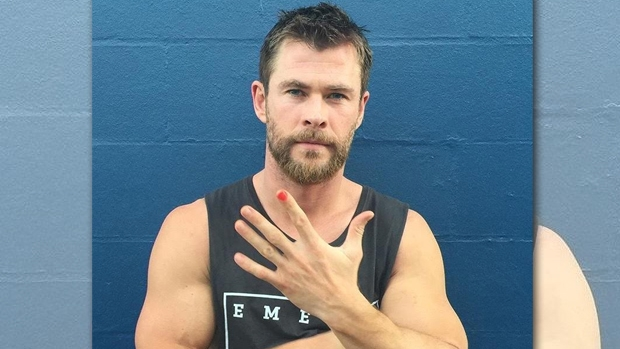 Putting his name and support behind the #polishedman campaign means for the entire month of October, Hemsworth and many, many others, are painting one nail to raise awareness and funds to end violence against children.
