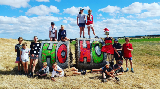 A troupe of 13 cousins have painted dozens of hay bales red, green, and white at Mt Moriac.