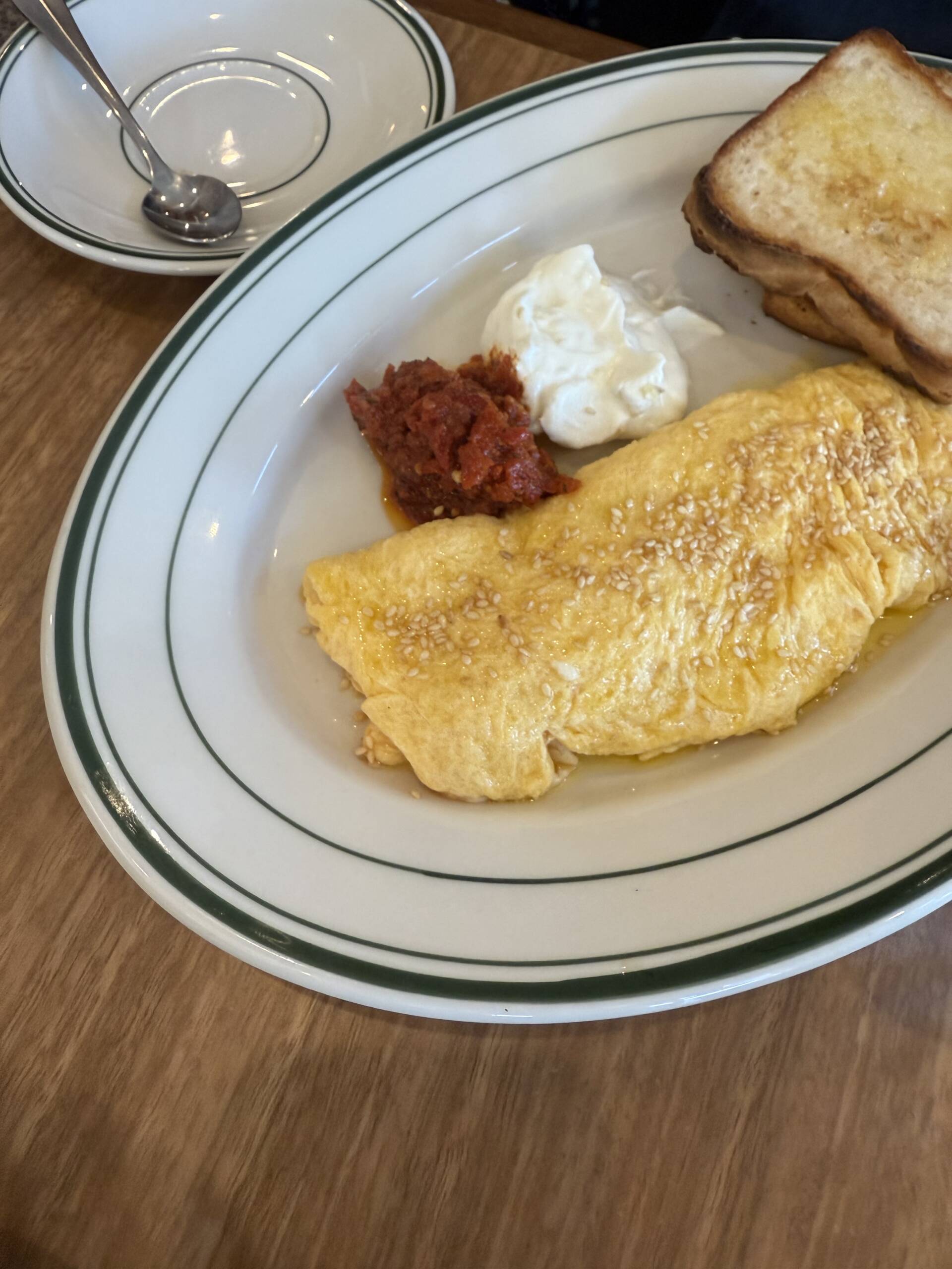 We started with the Turkish Egg Omelette- a standout that demonstrated their ability to blend cultural references with café classics. This wasn’t your average omelette. The three-egg base was soft but structured, and the whipped herbed lemon yoghurt on top was airy, citrusy, and fragrant.