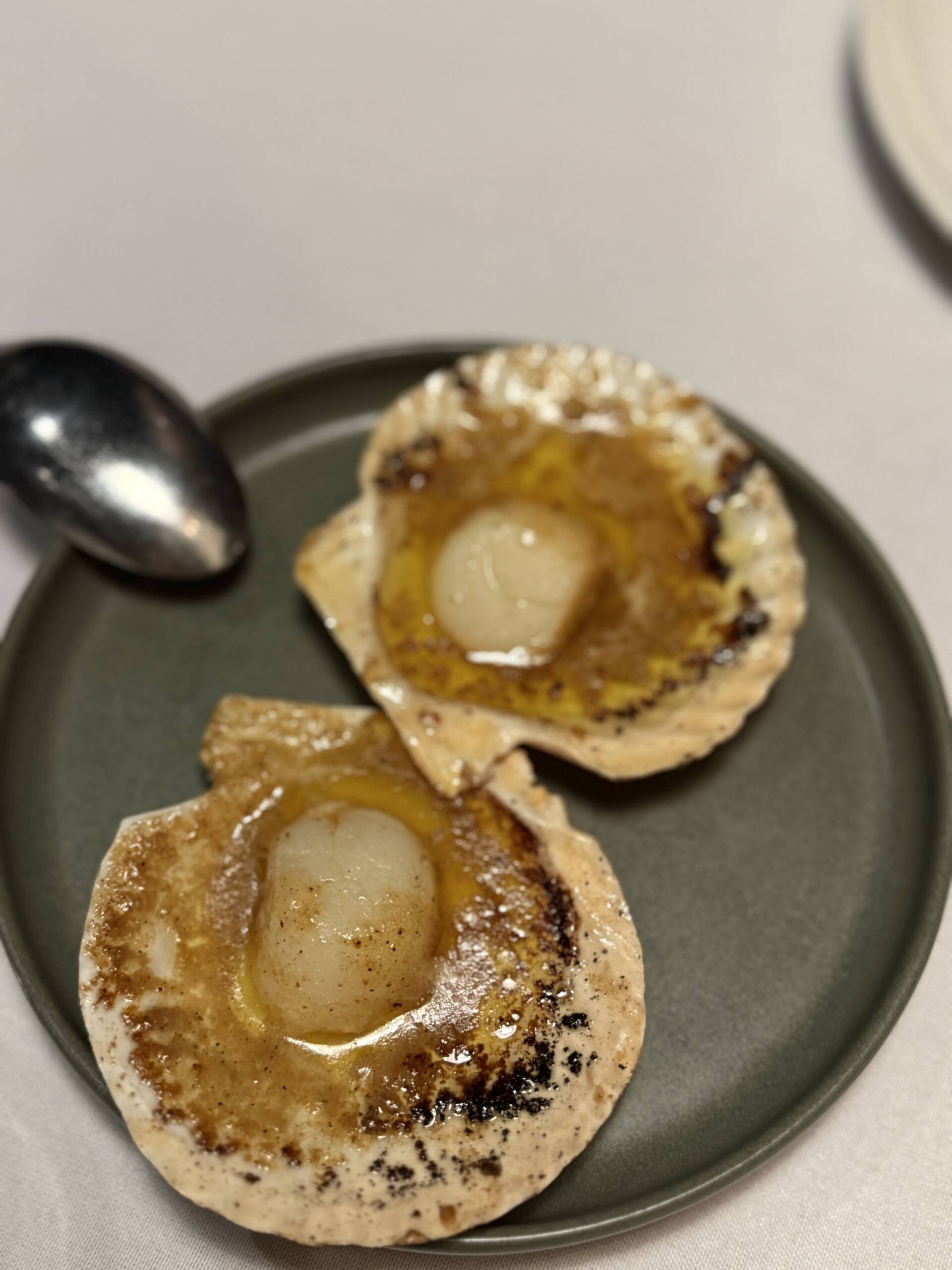 Without much encouragement needed, but happily welcomed by the waiter’s suggestion to load up on snacks, we started with the Scallop with burnt pear & tamarind butter, which was refined and smoky – just enough flair and a quail skewer brought sweet-sharp hits of persimmon and pomegranate with flame-licked quail – ie, cooked in the Josper.