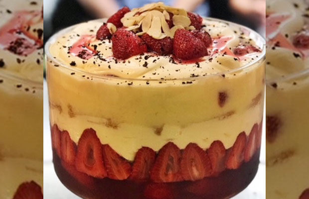 Emma Dean’s recipe for Australian Pepperberry and Roast Strawberry Trifle with Limoncello