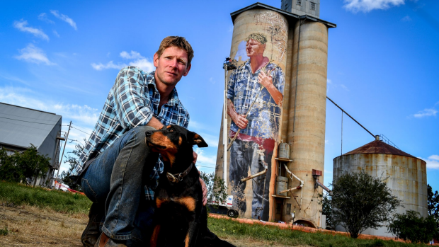 A farmer from the tiny town of Patchewollock has had his portrait painted onto a silo.