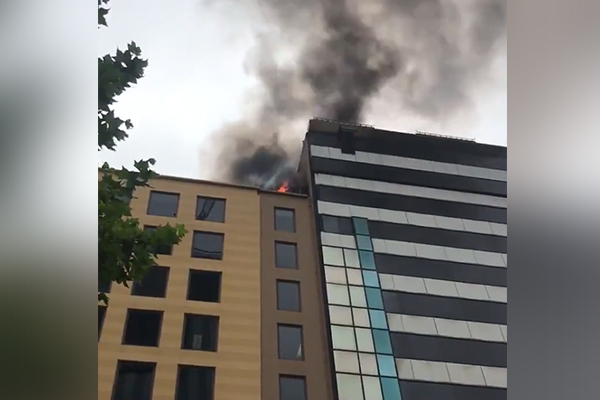 Black smoke was first spotted billowing from the building on Queen Street, near the corner of Bourke Street just before 5pm.