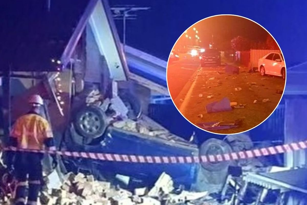 The force of the crash ripped through neighbouring fences and caused rubble and debris to fly across the street.