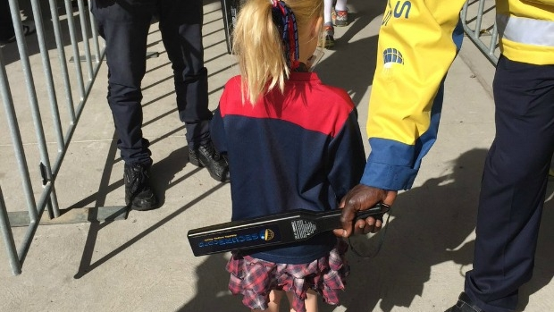 Four-year-old Holly was ‘wanded’ by security before Saturday’s clash between Melbourne and Essendon.
