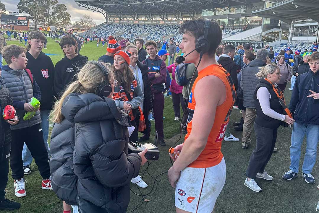 GWS star Sam Taylor has delivered one of our favourite post-match interviews of the season on 3AW Football after the Giants stormed home to beat the Bulldogs at Ballarat.