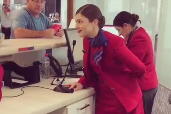 Virgin Australia guest services attendant Bethany Stagg was updating passengers on flight schedules on Monday when she broke into a rendition of the Judy Garland classic Have Yourself A Merry Little Christmas.