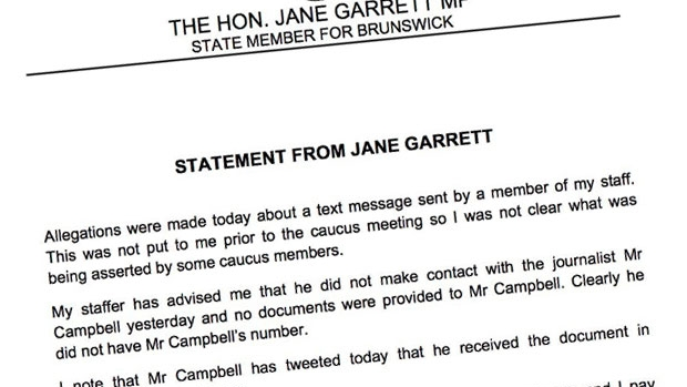 Jane Garrett says she is finalising a formal complaint about how she was treated as Emergency Services Minister.