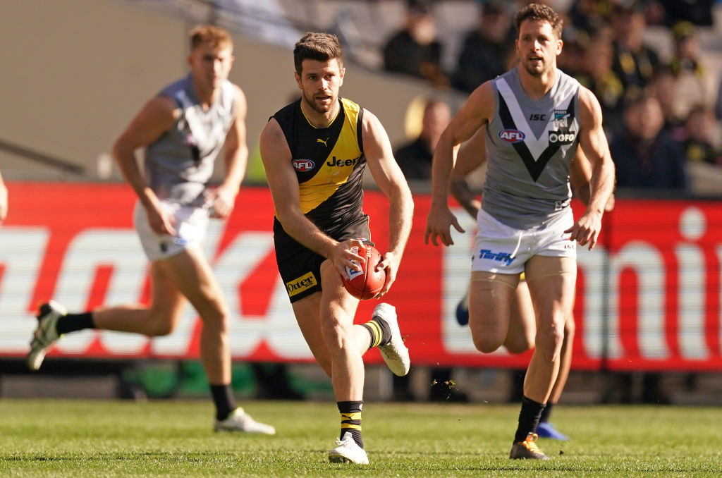 Jack Riewoldt has demonstrated his well missed star qualities booting three goals for the Tigers.