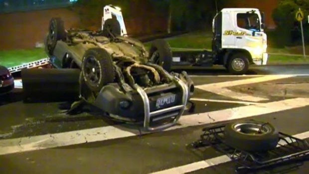 A Honda Civic allegedly went through a red light at 9.20pm hitting at least two other vehicles, sending one of them into the air.