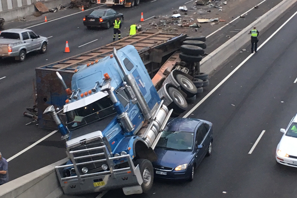 No one was seriously injured in the smash but two lanes are closed in both directions.