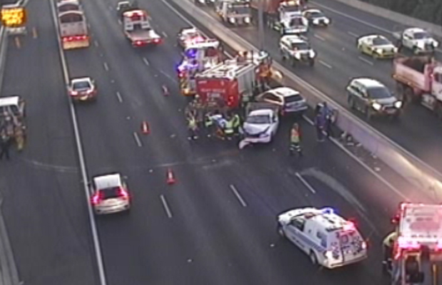 Five cars were involved in the crash, which happened near Airport Drive at Tullamarine about 6.15am.