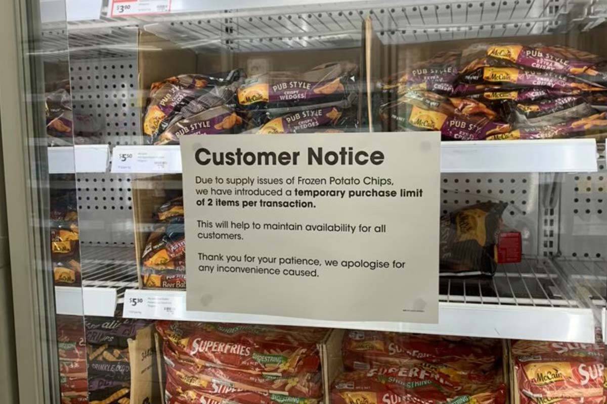 Coles in Point Cook has put up signs limiting frozen potato chip purchases to two items per customer.