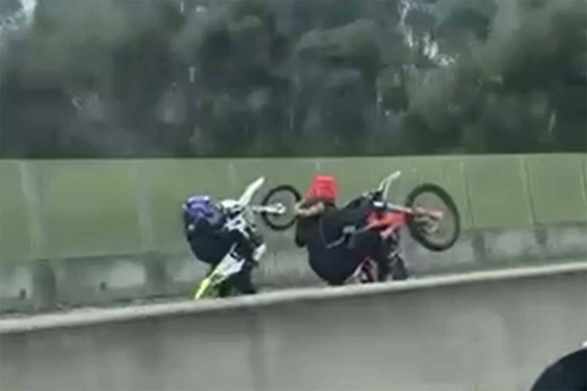 Illegal dirt bike riders have again been captured on camera travelling on a freeway.