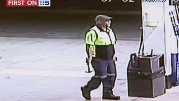 The man, who was filling up his 4WD, saw what was taking place and armed himself with a hammer.