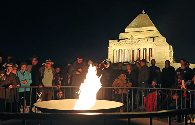 Tens of thousands of Victorians have stood in eerie silence for the Anzac Day dawn service at Melbourne’s Shrine of Remembrance.