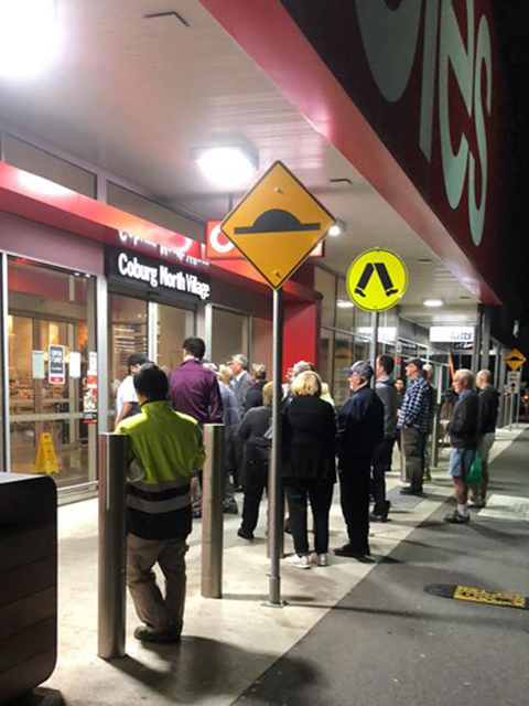 Above: Shoppers queue at Costco Docklands Above: Shoppers queue at Coles in Coburg North before opening at 6am Above: Shoppers queue at Aldi in DandenongUsually busy public spaces are also unusually quiet, with one 3AW Mornings listener describing the CBD as so quiet it feels “like Christmas” this morning.