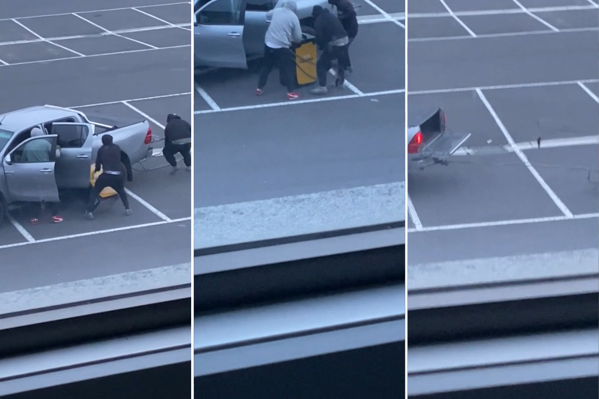 Media Advisor John McLaughan says CCTV shows the men unsuccessfully attempting to lift the stolen ATM into the back of a Toyota Hilux and later wrapping a chain around the machine.