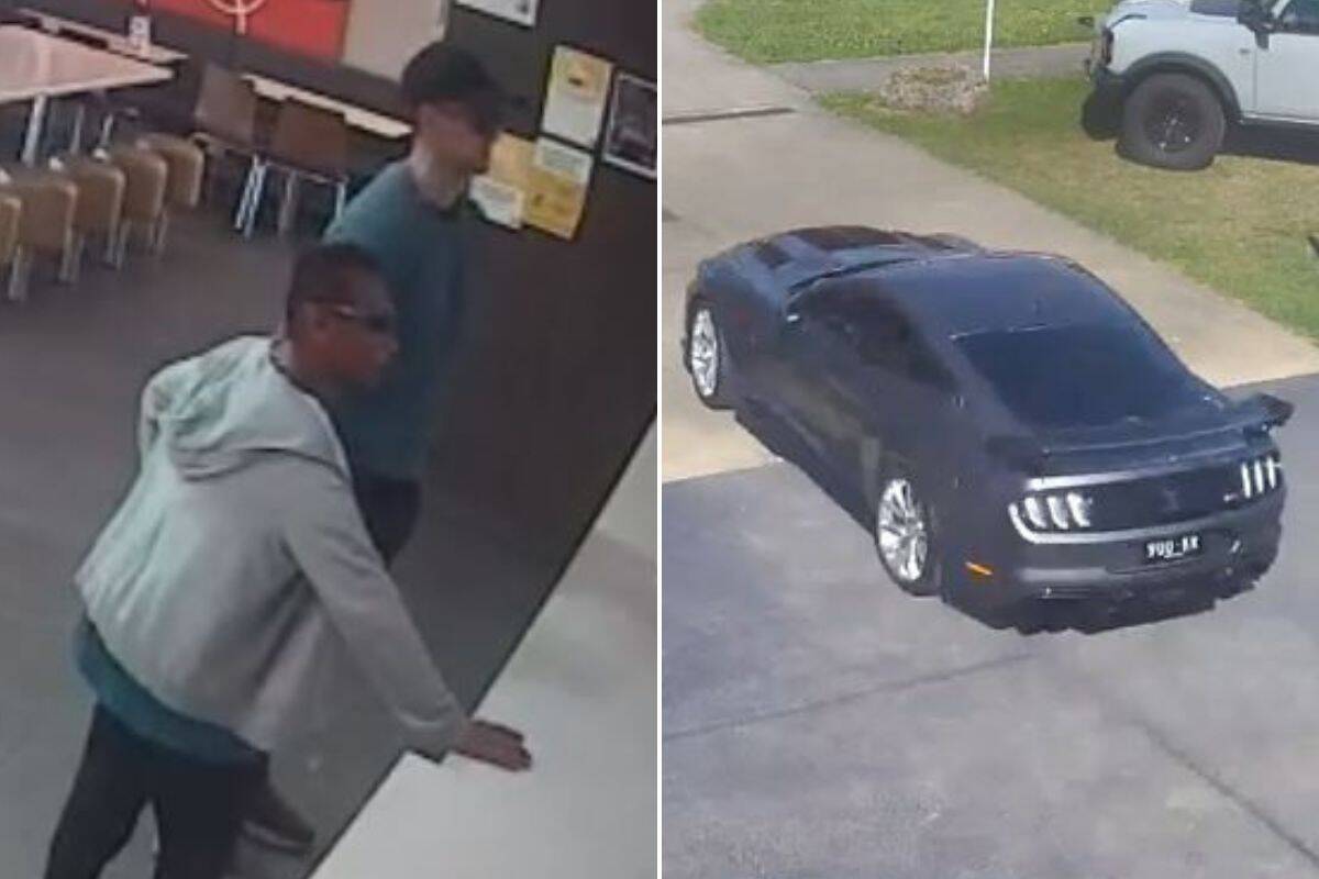 Just before 4pm on October 11, two men were seen loitering out the front of Mustang Motorsport, before driving off in the Mustang a short time later.