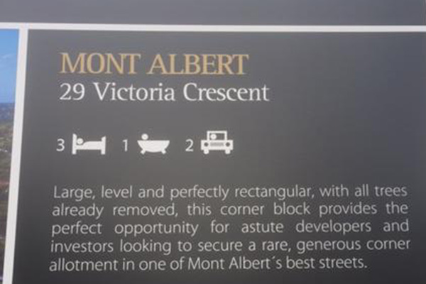 Tom Elliott has received a photo of a sign advertising a property in Melbourne’s leafy eastern suburbs, that contains some confusing contradictory language.