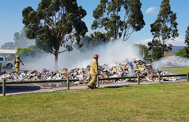 A recycling truck has caught fire at Rowville, forcing the driver to dump a burning load onto the road.