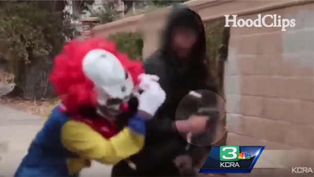 Scary clown prank goes wrong after prankster has a gun pointed at his face