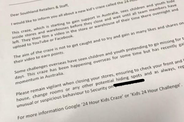 Shops at Southland have been handed a letter from centre management warning them about a “new craze”.
