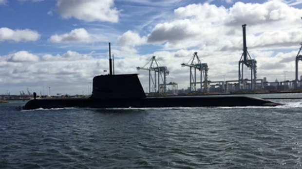 3AW listener sent in this photo of a large submarine heading through the bay towards the Westgate Bridge.