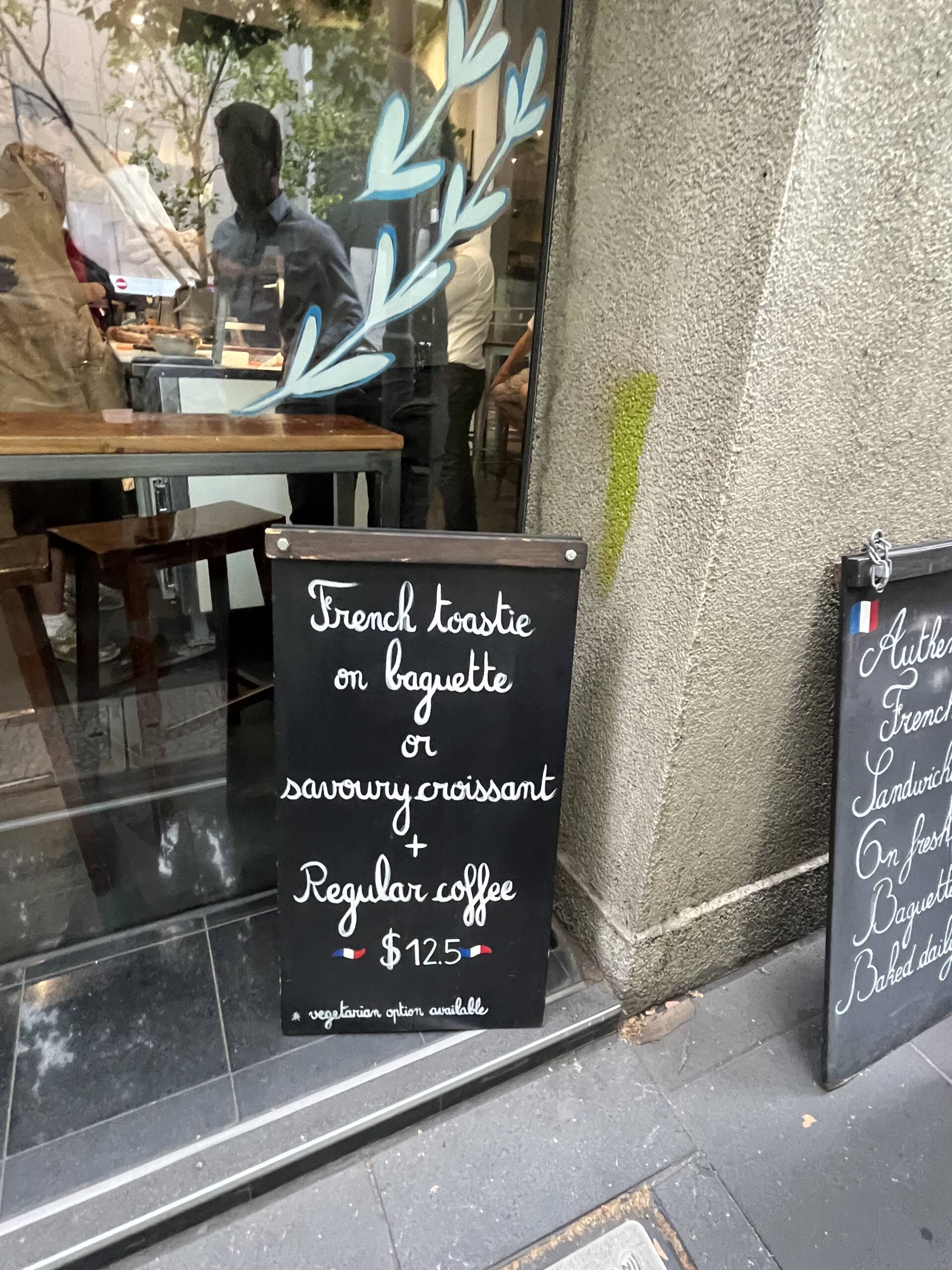 There’s even a sign out front spruiking a plain baguette, savoury croissant and regular coffee for about $12.50, which is essentially 2018 pricing snuck through a wormhole.