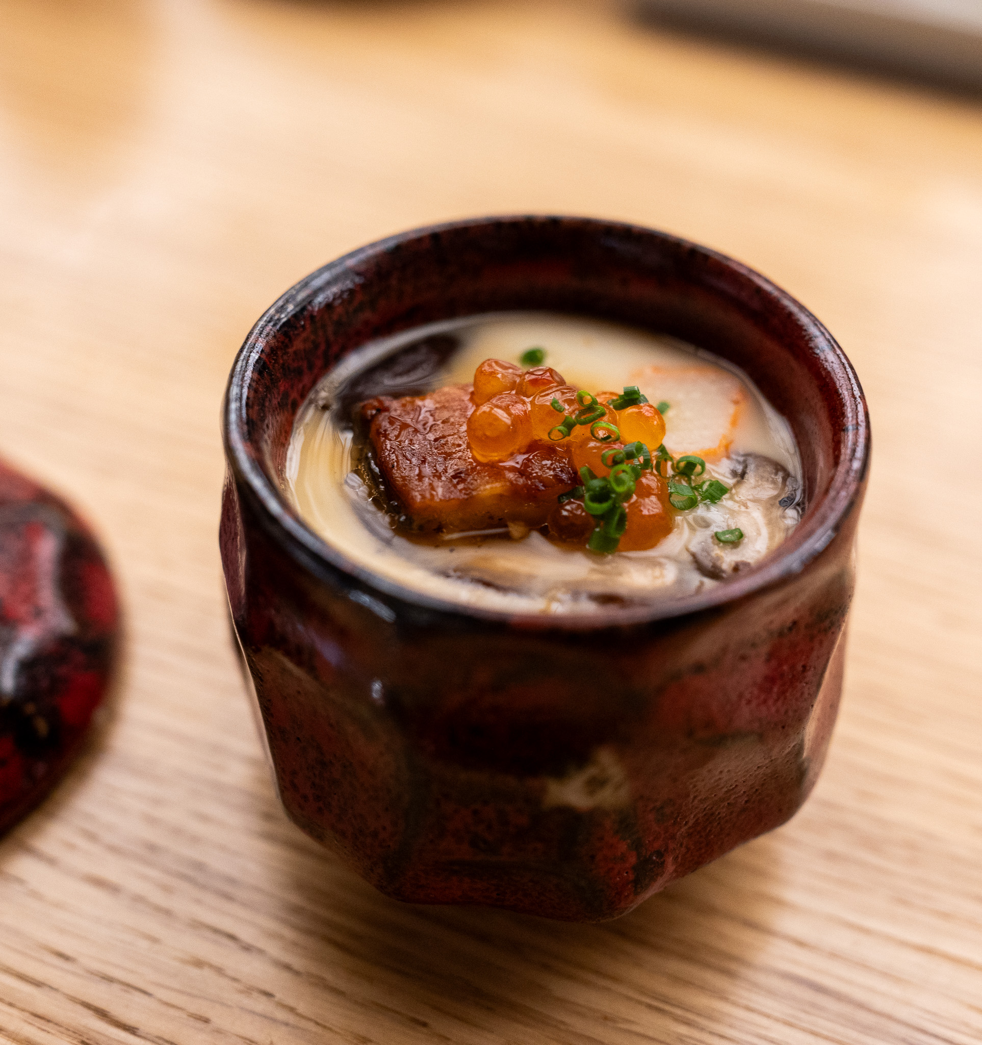 Miso soup, made from scratch without a packet in sight, is brewed from a scallop and crab stock, bubbling with seaweed, eel and pork rind for a savoury twist you didn’t realise you needed.