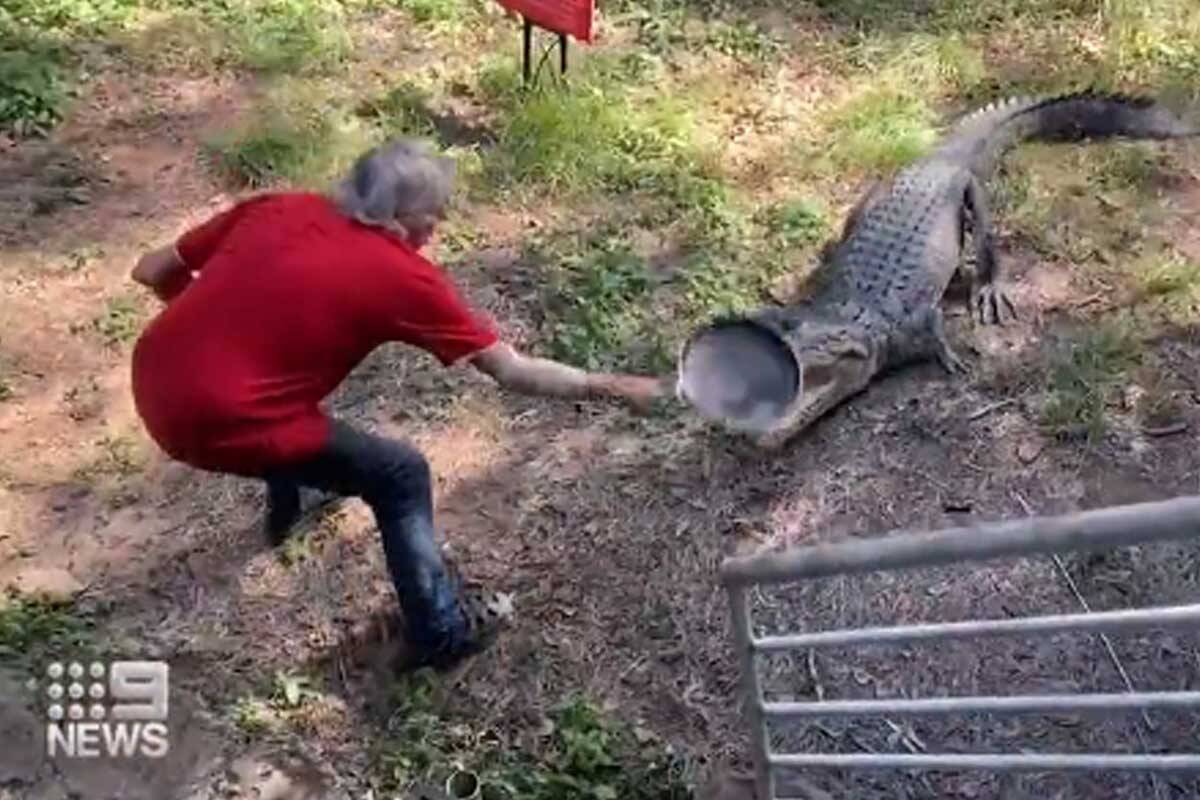 Kai Hansen sent social media into a spin when he smacked a crocodile on the snout with a frying pan.