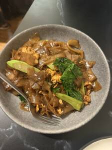 The Pad See Ew with chicken was phenomenal. Not just good, phenomenal. It had that perfect balance of soft noodles, savoury soy richness, and wok-charred edges that make the whole thing sing. There’s an art to making Pad See Ew properly, because it can so easily become heavy or one-note, but this one had lift. It was deeply comforting without feeling dull, glossy without being greasy, and every mouthful felt exactly where it should be. It’s the kind of dish you think you know well until you taste one that’s been done precisely. This was that version. When I found out my partner had eaten the leftovers for lunch yesterday I was quietly disappointed but the report was, “even better the next day”.