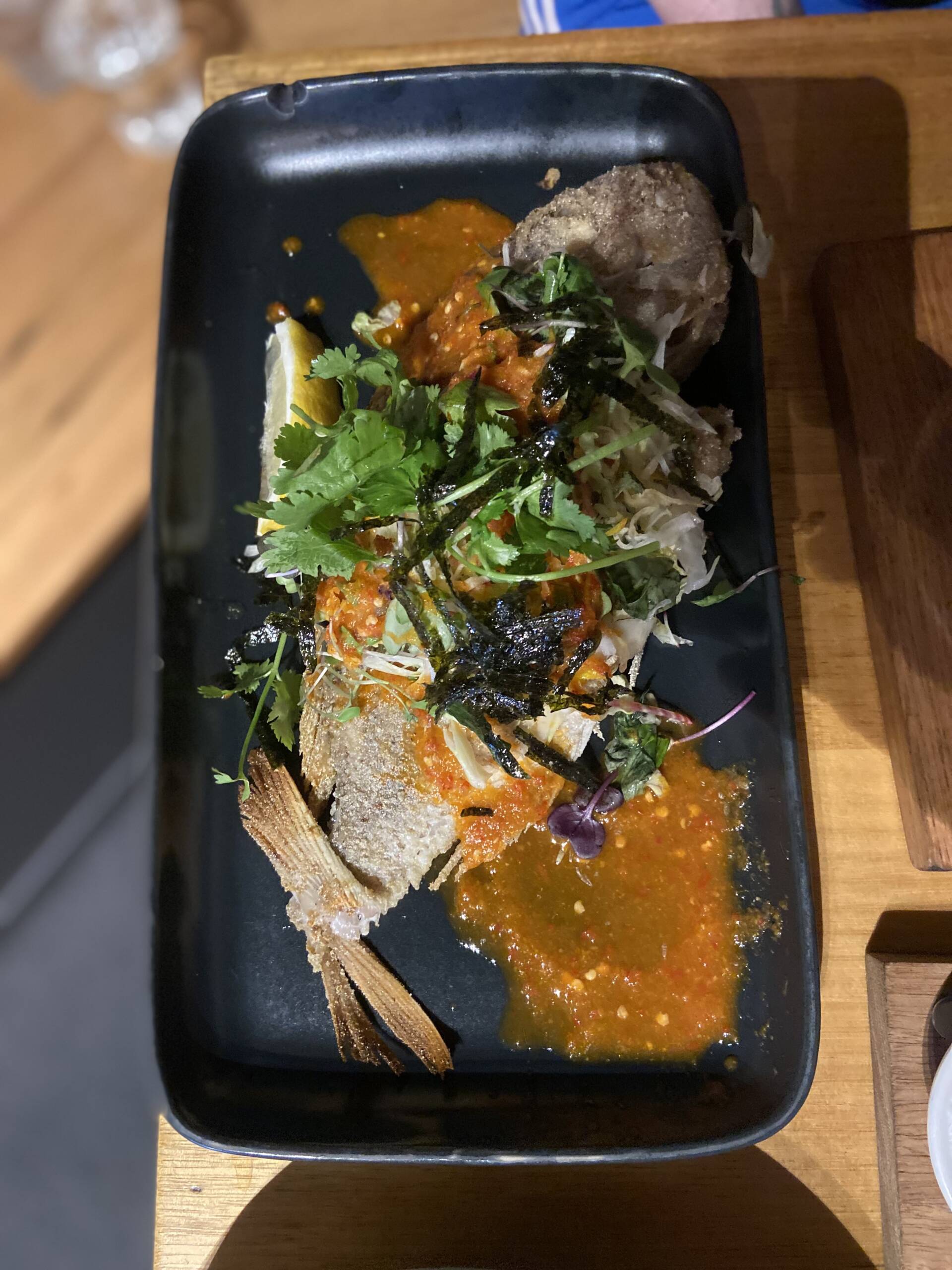 The kitchen treats it with a light hand; aromatics, citrus and Asian-leaning seasoning, so the snapper still tastes like the ocean rather than a sauce delivery system.