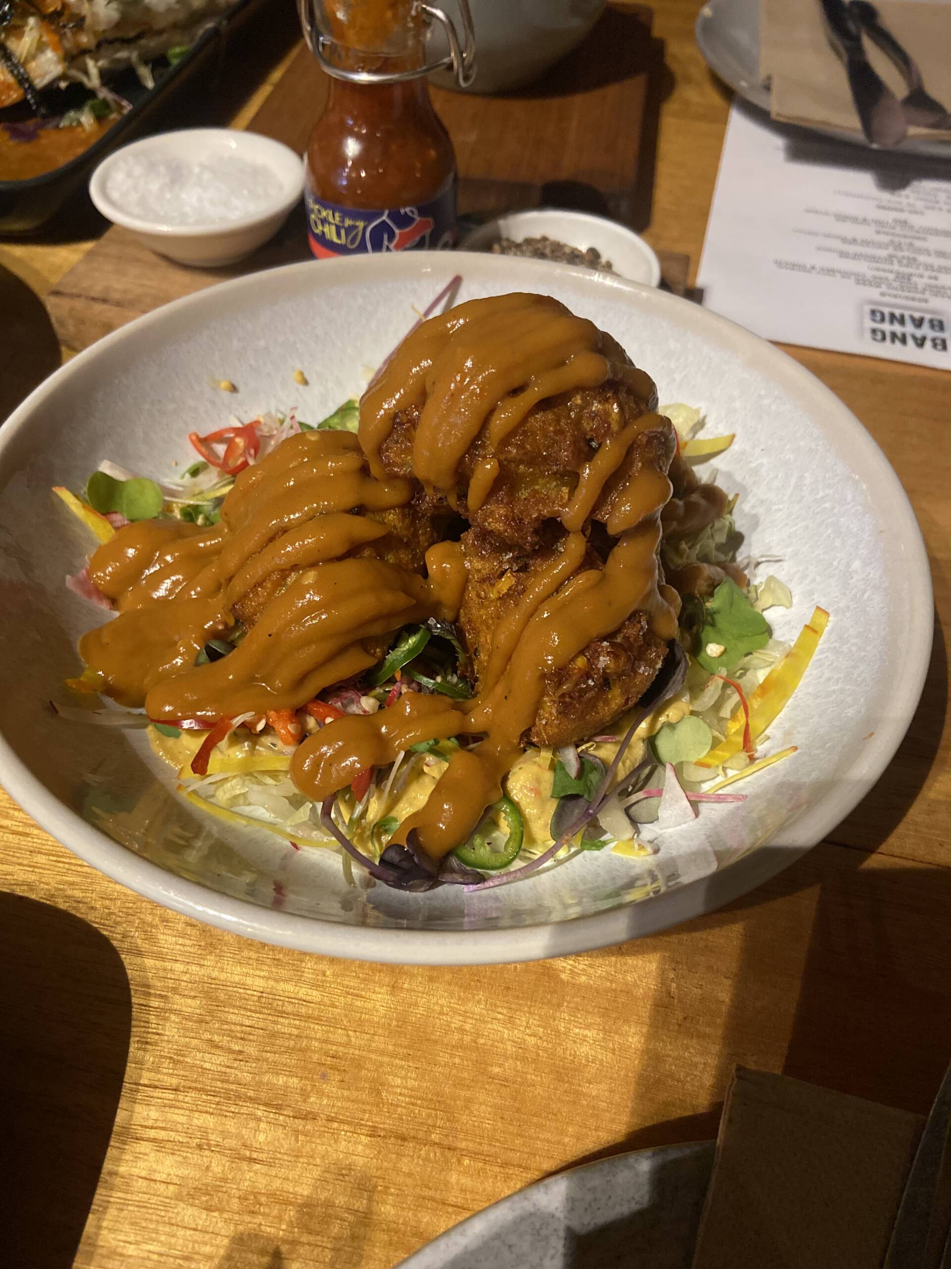 The first bite is all about texture and balance – the hot tamarind glaze leans into sweet, salty and a little smoky, with an undercurrent of Asian spice that keeps you coming back for more.