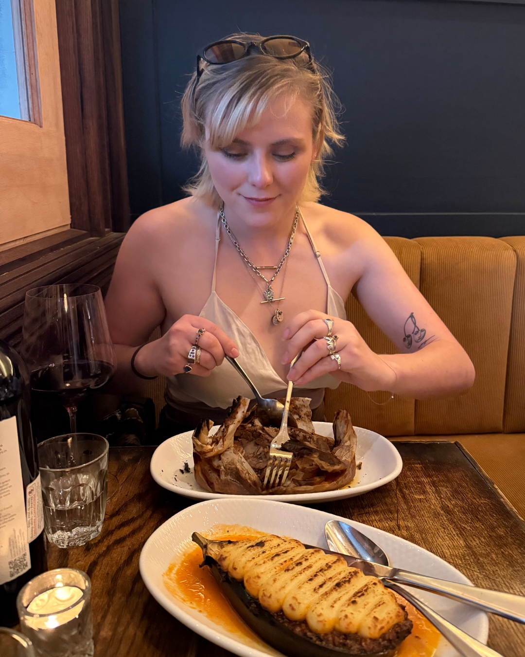 And the eggplant filled with beef ragù and béchamel? Comfort food heaven. Think of it as a cozy Greek lasagne in vegetable form.