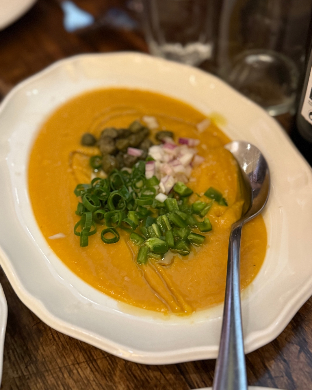 We started with a yellow split pea dip from Santorini, served warm with bread.