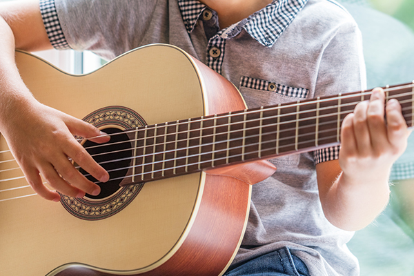 The boy plays a very impressive version of Eagles hit Hotel California on the guitar.