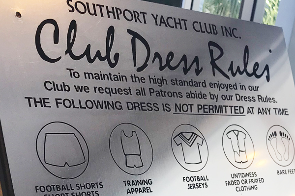 A sign at the Southport Yacht Club has caught Tom Elliott’s attention.