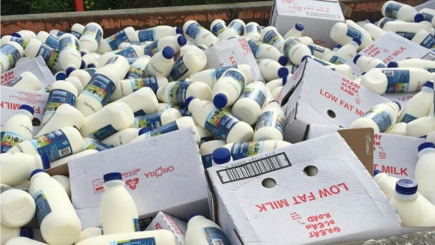 Thousands of full milk bottles thrown into skip bin at Coles Distribution Centre at Truganina
