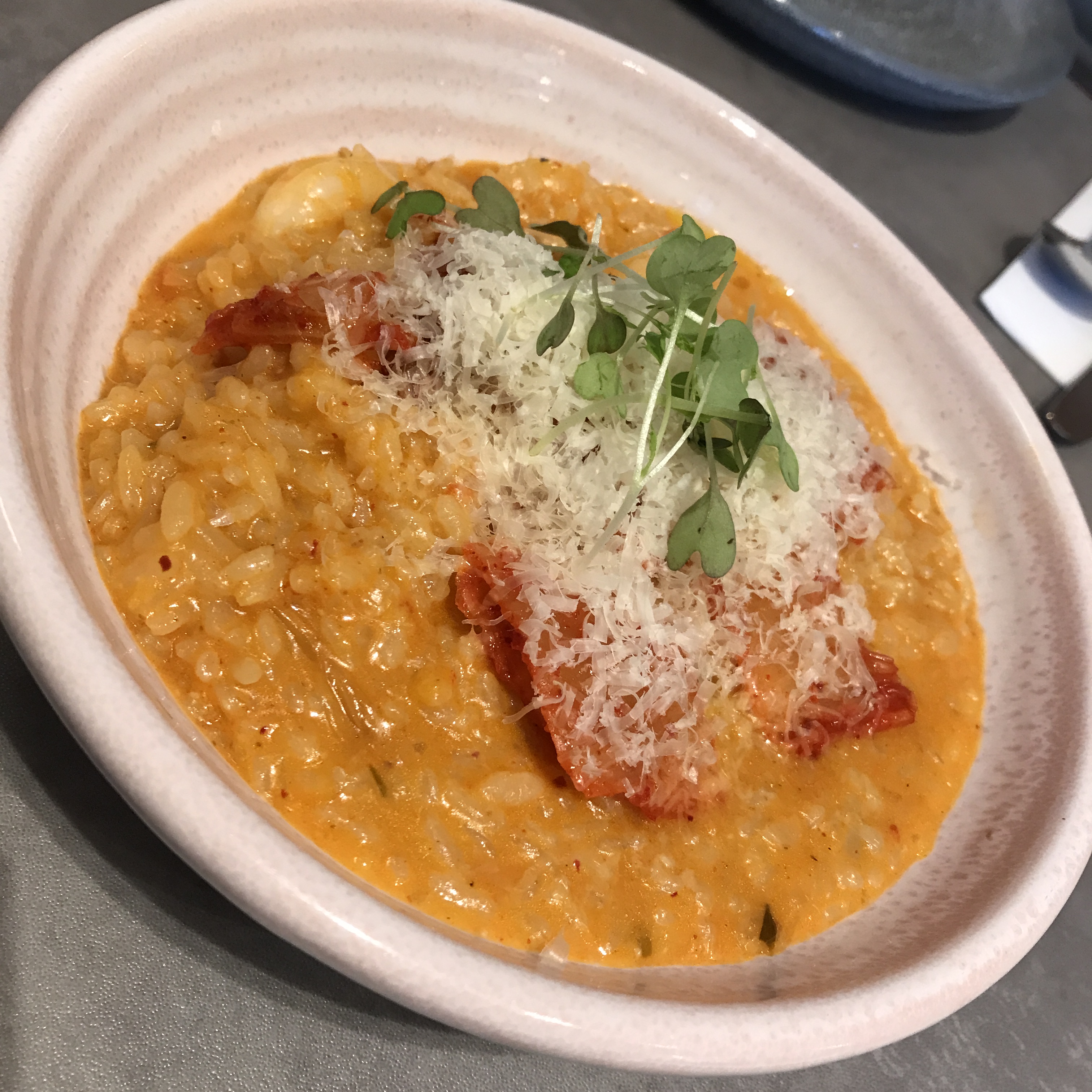 I had my eyes on the Kimchi and prawn risotto, cooked in a chilli broth, topped with gruyere cheese.